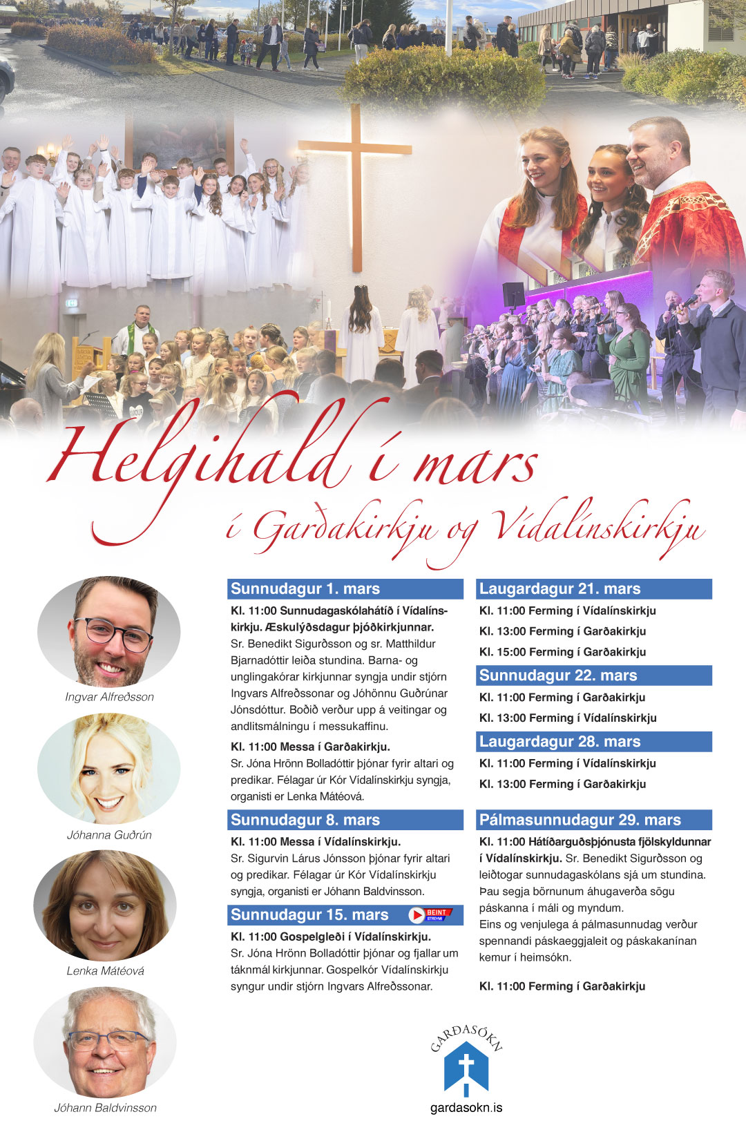 Fjölbreytt helgihald verður í mars að vanda eins og sjá í auglýsingunni hér að neðan.