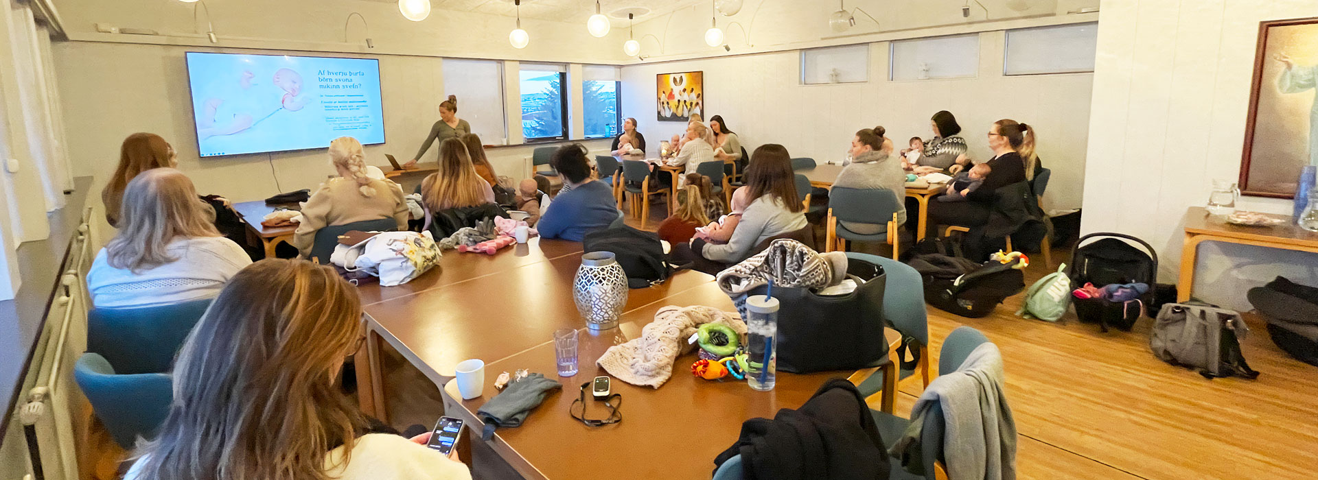 Fyrsta samvera – kynning á námskeiði auk örerindis um þroska ungra barna og tengsla þeirra við nánustu umönnunaraðila. Stella Rún Steinþórsdóttir foreldri, umsjónaraðili foreldrasnámskeiðsins og nemandi í félagsráðgjöf við Háskóla Íslands.
