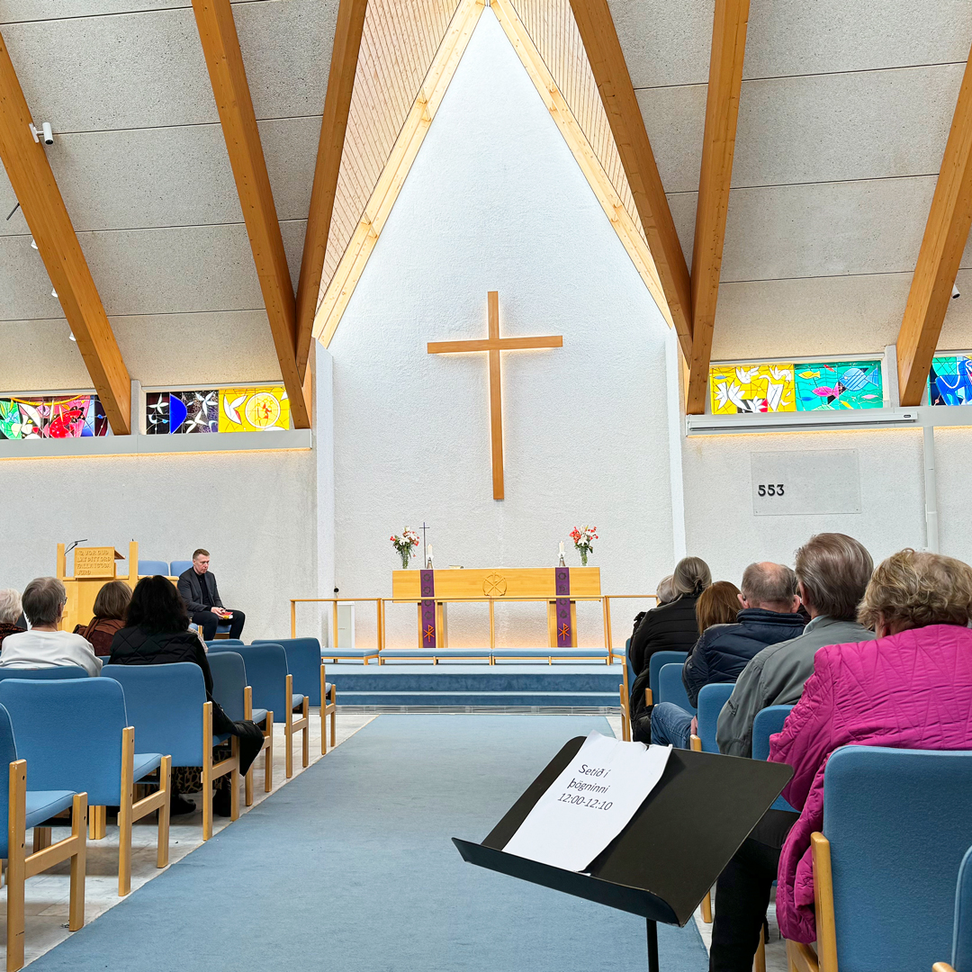 Kyrrðarstund hefst í Vídalínskirkju kl. 12:00 og opið hús í safnaðarheimilinu kl. 12:30.